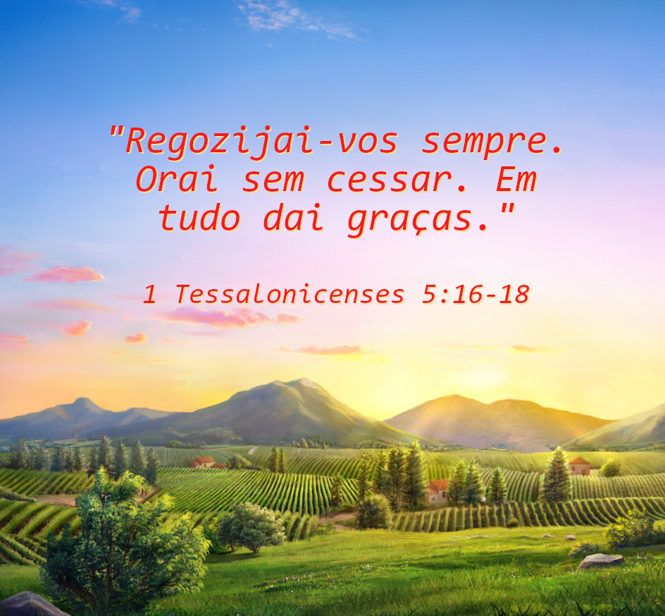 Regozijai-vos sempre. Orai sem cessar. Em tudo dai graças; porque esta é a vontade de Deus em Cristo Jesus para convosco.